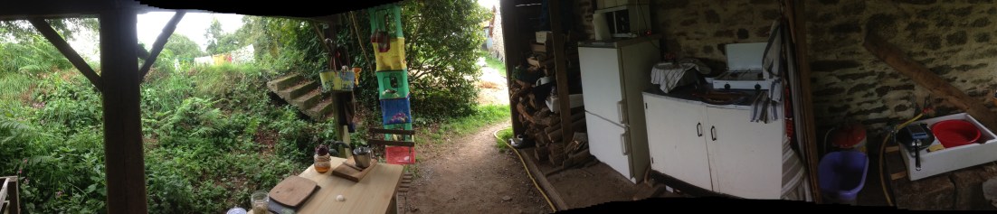 La maison a été en travaux ces deux mois d’été, la cuisine s’est installée sous un abri à bois, contre un pignon de la maison. Mésanges, et campagnol deviennent sacrément familiers! L’un picore des miettes sur la table pendant que je prends mon petit dej’ et l’autre ne s’enfuit même plus quand j’ouvre le placard et la découvre dans SON paquet de TUC qu’elle s’est attribué mi-juillet et que je lui aie laissé !